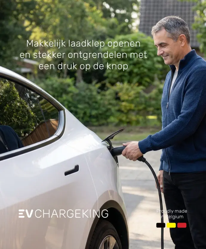 Deze laadkabel maakt gebruik van de EVChargeking Tesla Chargeport technologie, een mooi geintegreerde drukknop op de stekker aan voertuigzijde, waarmee je de laadklep kan openen en de kabel kan ontgrendelen zonder eerst in de wagen de laadklep te moeten openen, of de autosleutel of telefoon te gebruiken. Dit is een unieke functionaliteit die alleen op de EVChargeking laadkabels te vinden is!